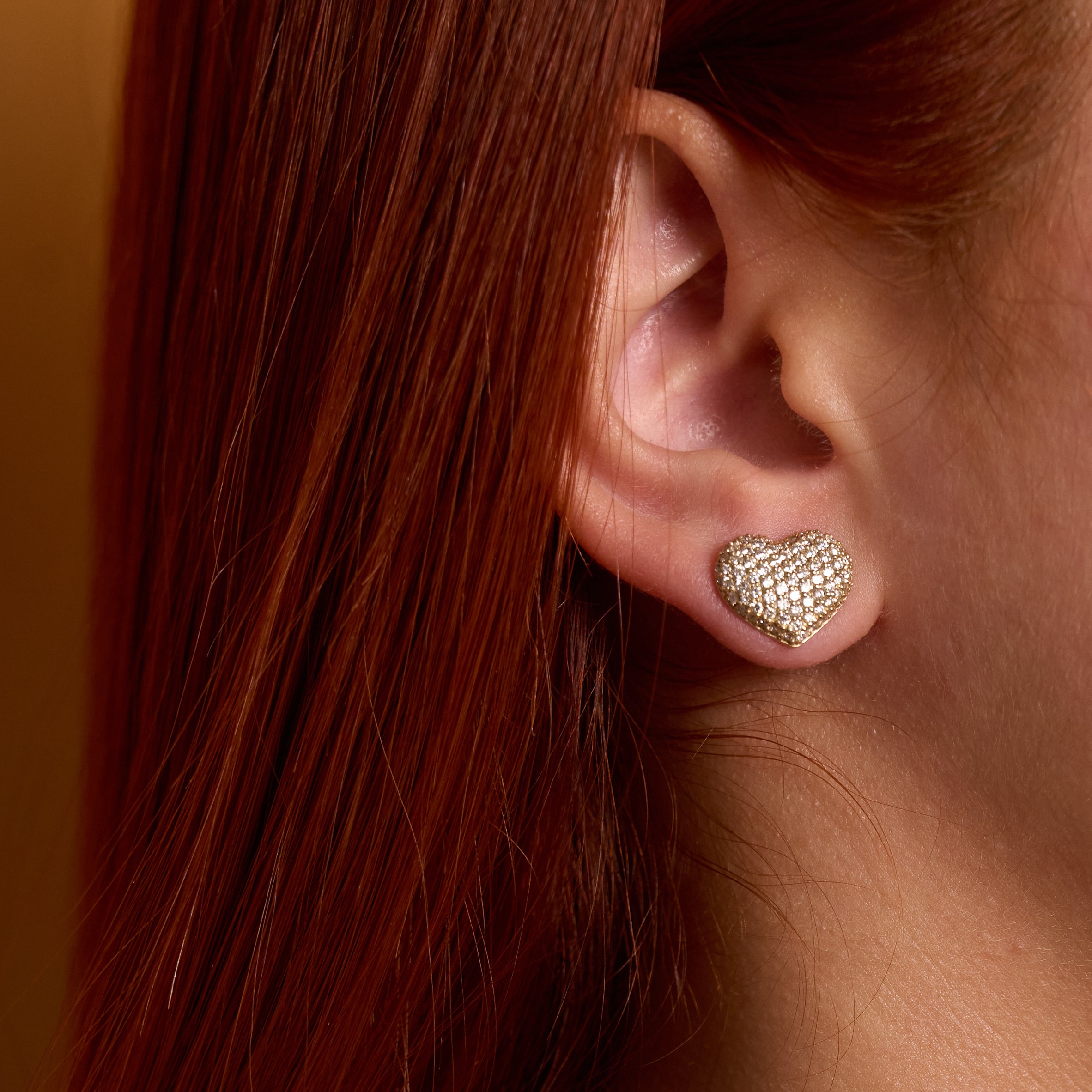 Sweetheart Puffed Diamond Heart Post Back Earrings