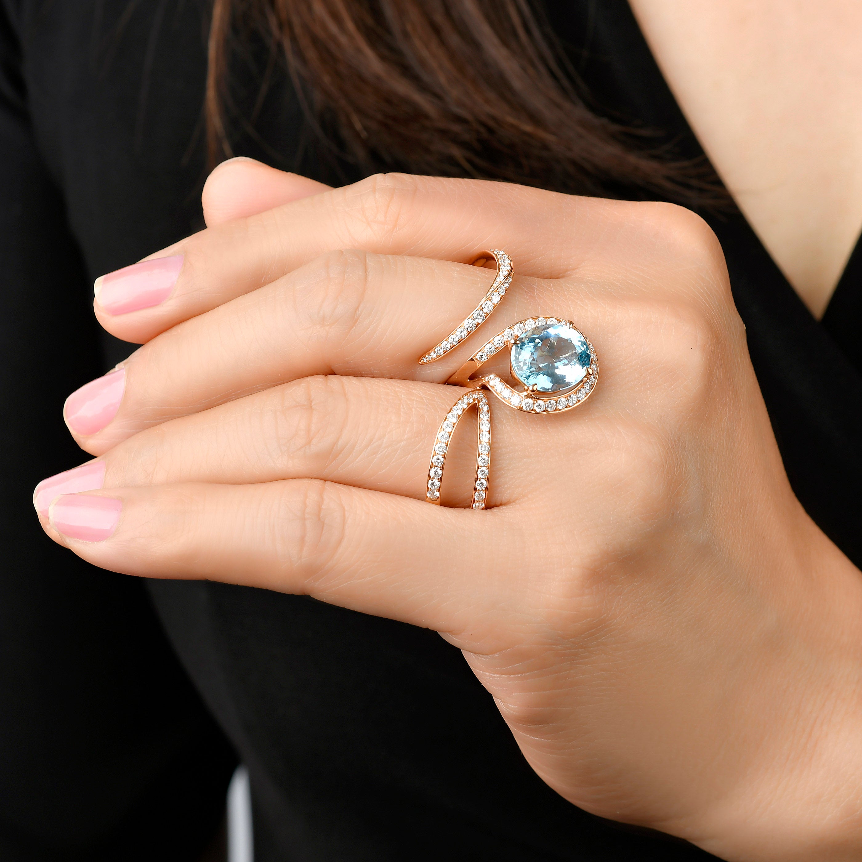 Wildflower Aquamarine Double Cocktail Ring