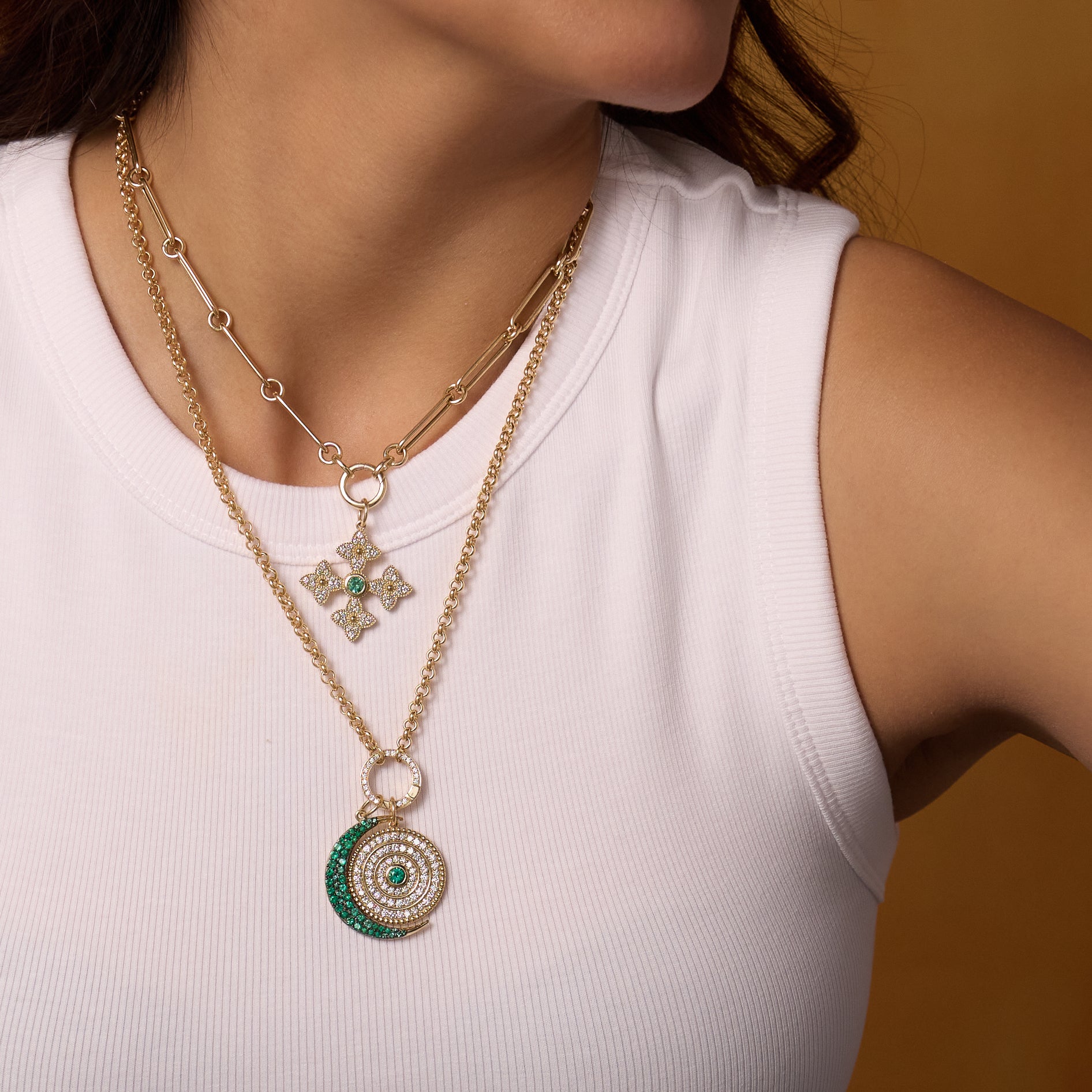 Diamond and Emerald Byzantine Cross Charm