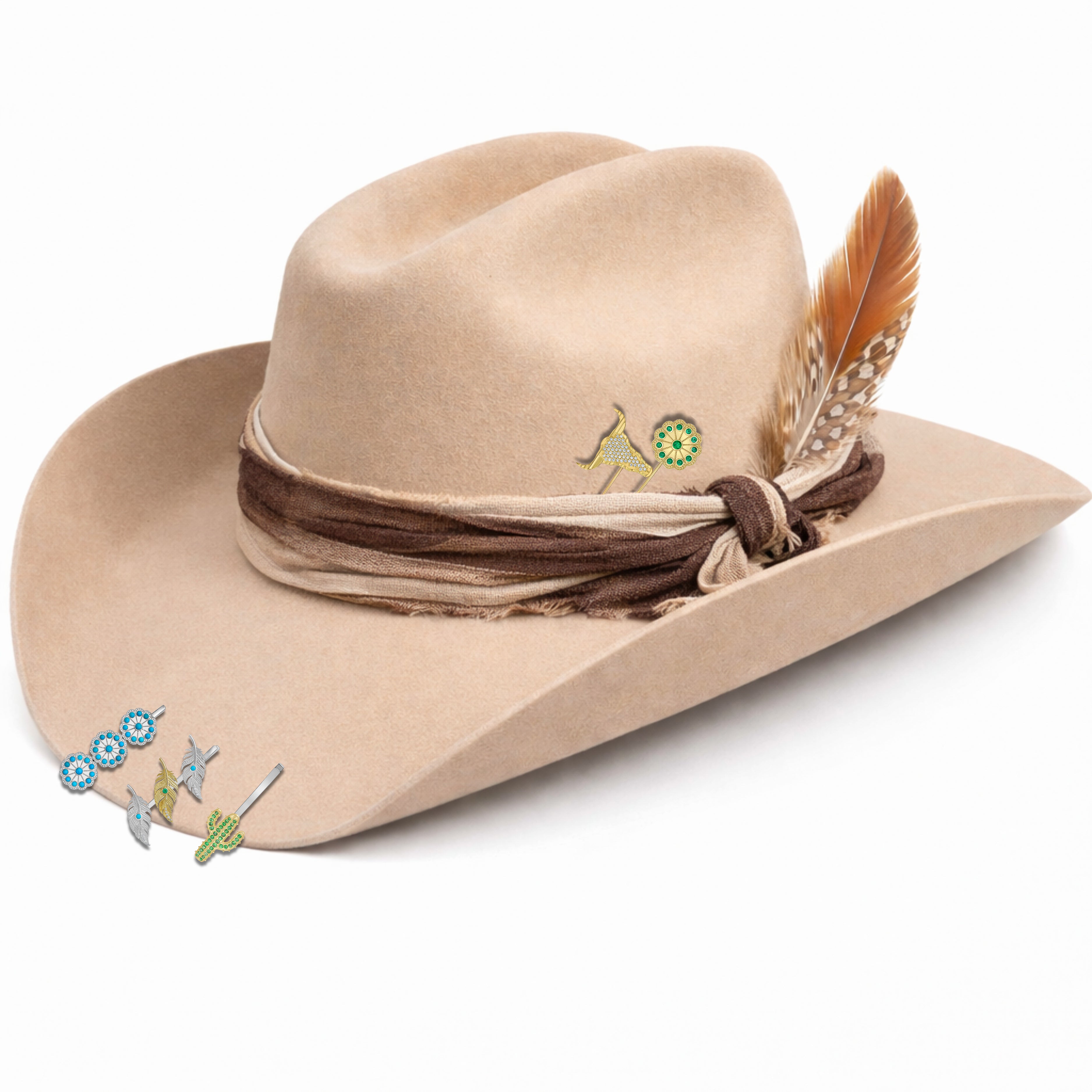Our Hat Accessories Collection is designed to elevate and personalize your cowboy hat with effortless, wearable details. Featuring hat pins and hat brim slides, each piece adds style while remaining easy to use and completely customizable.