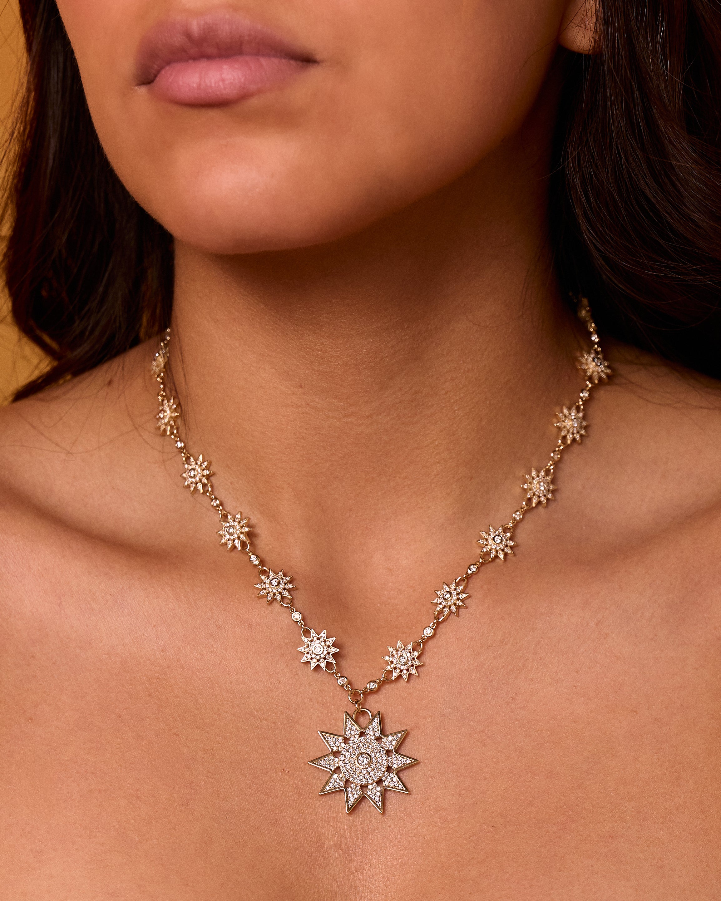 Lionheart Lumière diamond star charm station necklace in 14K gold with diamonds — a celestial design echoing the Victorian era