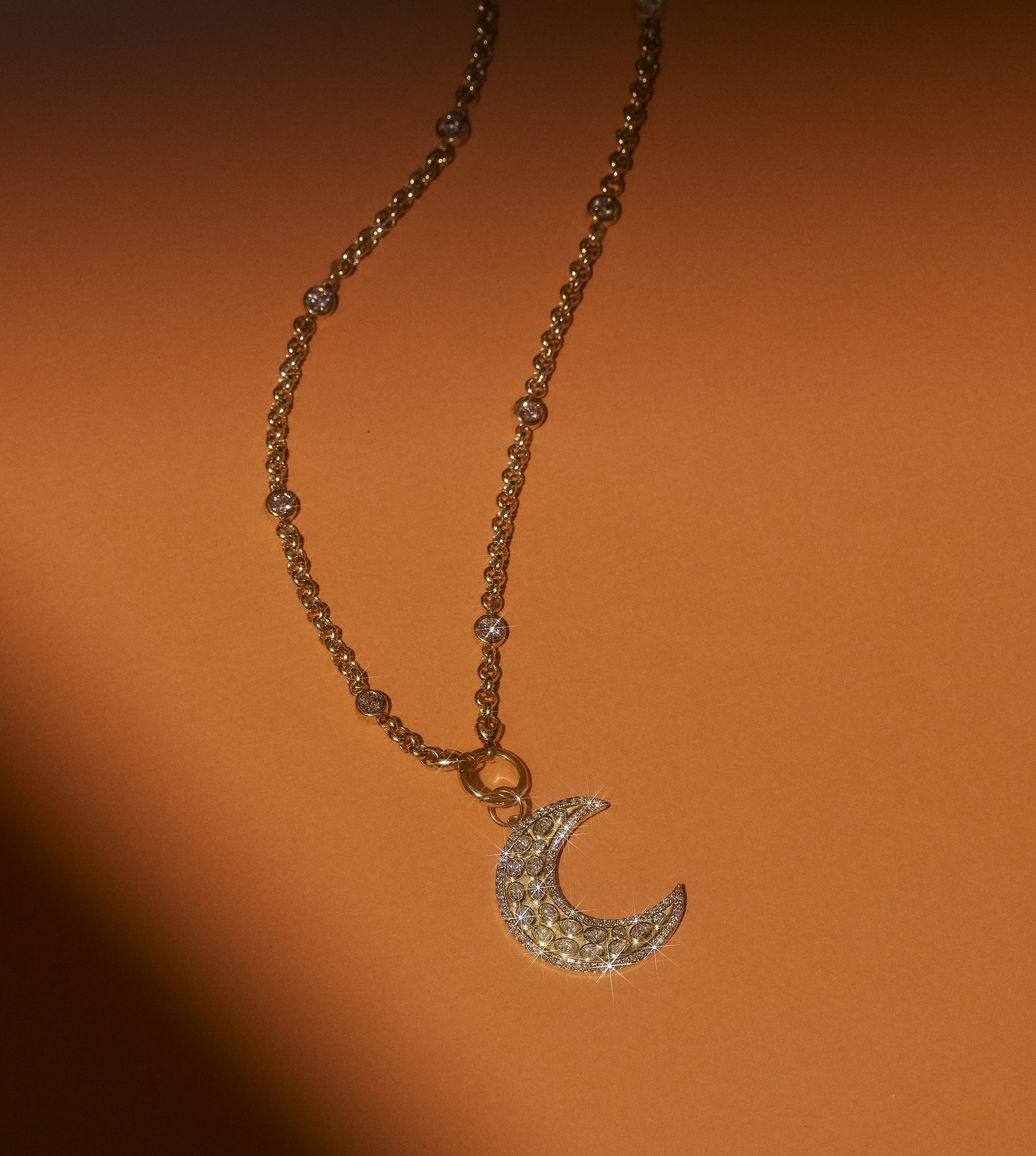 The Måneskin Collection is a poetic reflection of a cherished one’s radiant presence, featuring a constellation of bezel-set gemstones and shimmering diamonds that capture the ethereal beauty and timeless glow of moonlight.