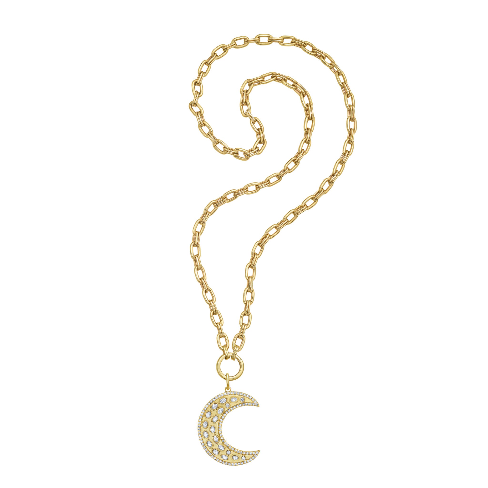 Måneskin Diamond Moon Charm on the Lionheart Signature Chain Necklace