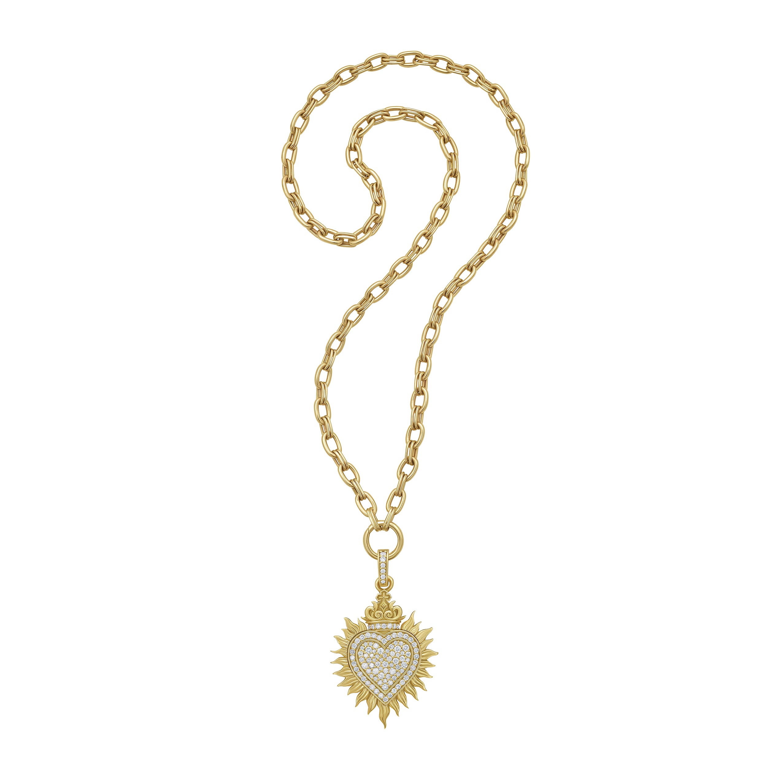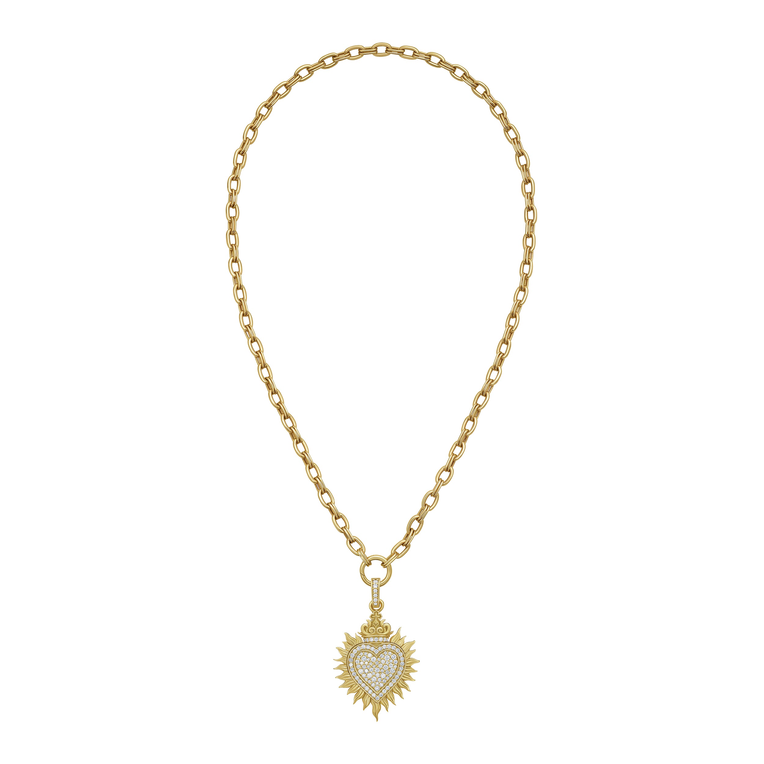 Sacred Heart Pavé Diamond Charm on the Lionheart Signature Chain Necklace