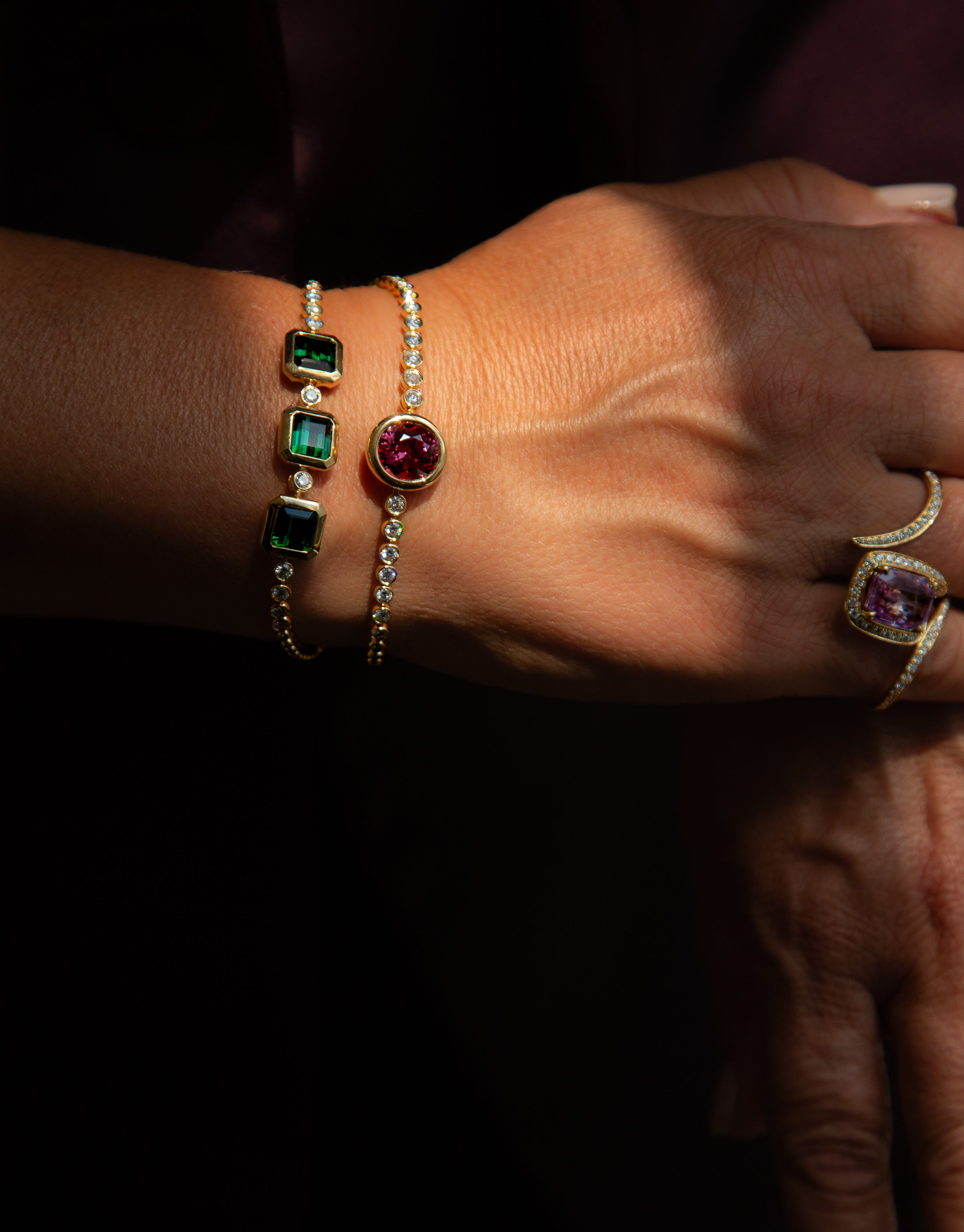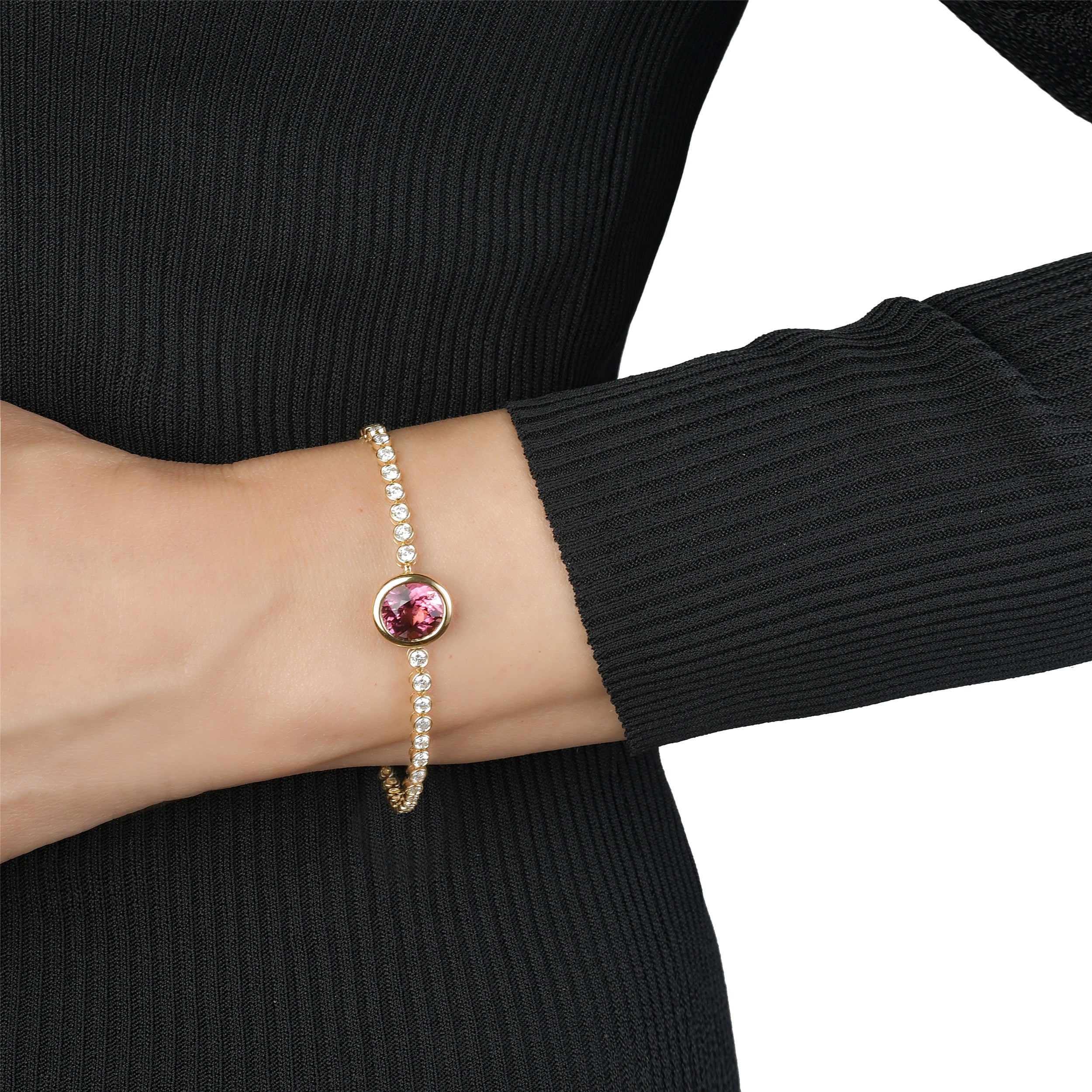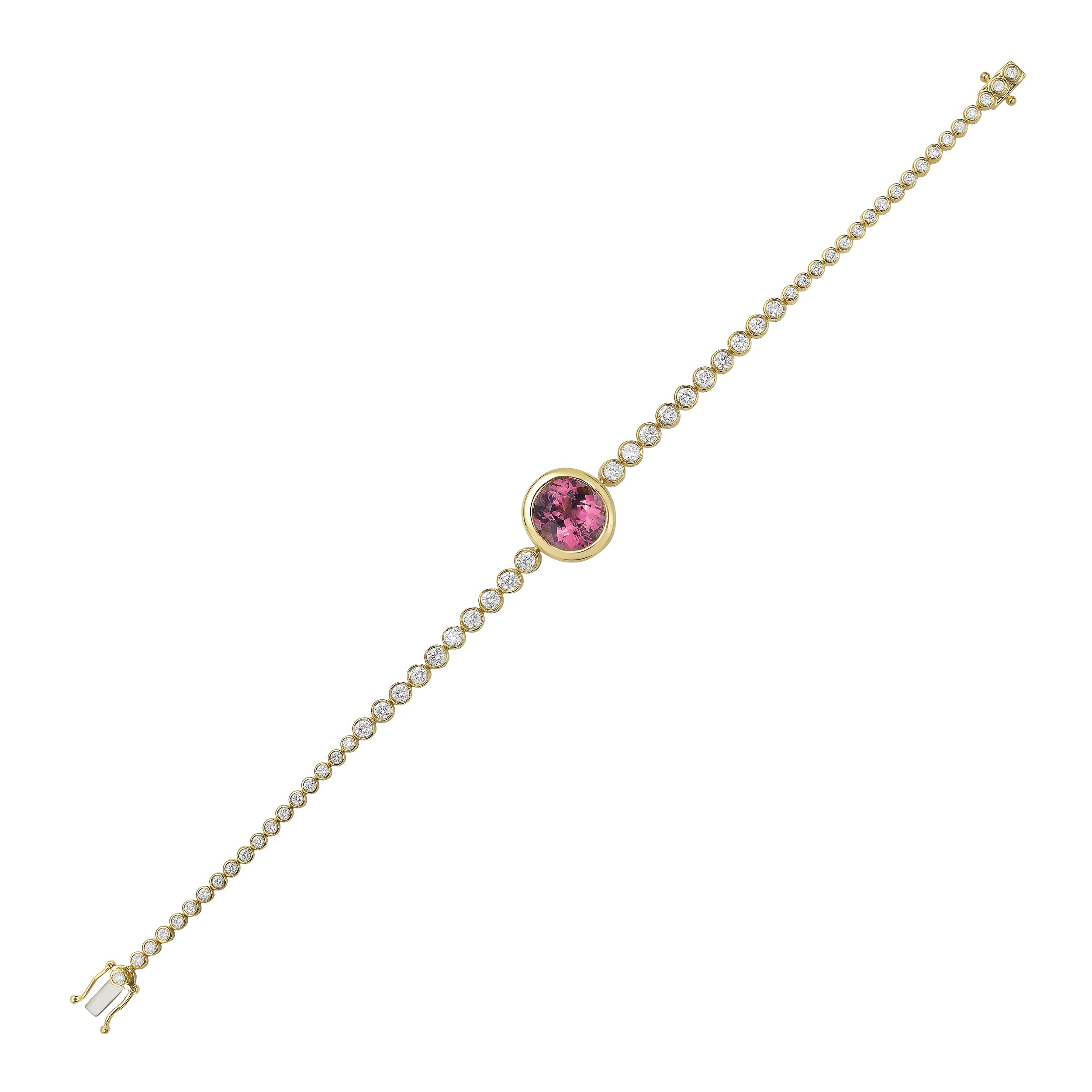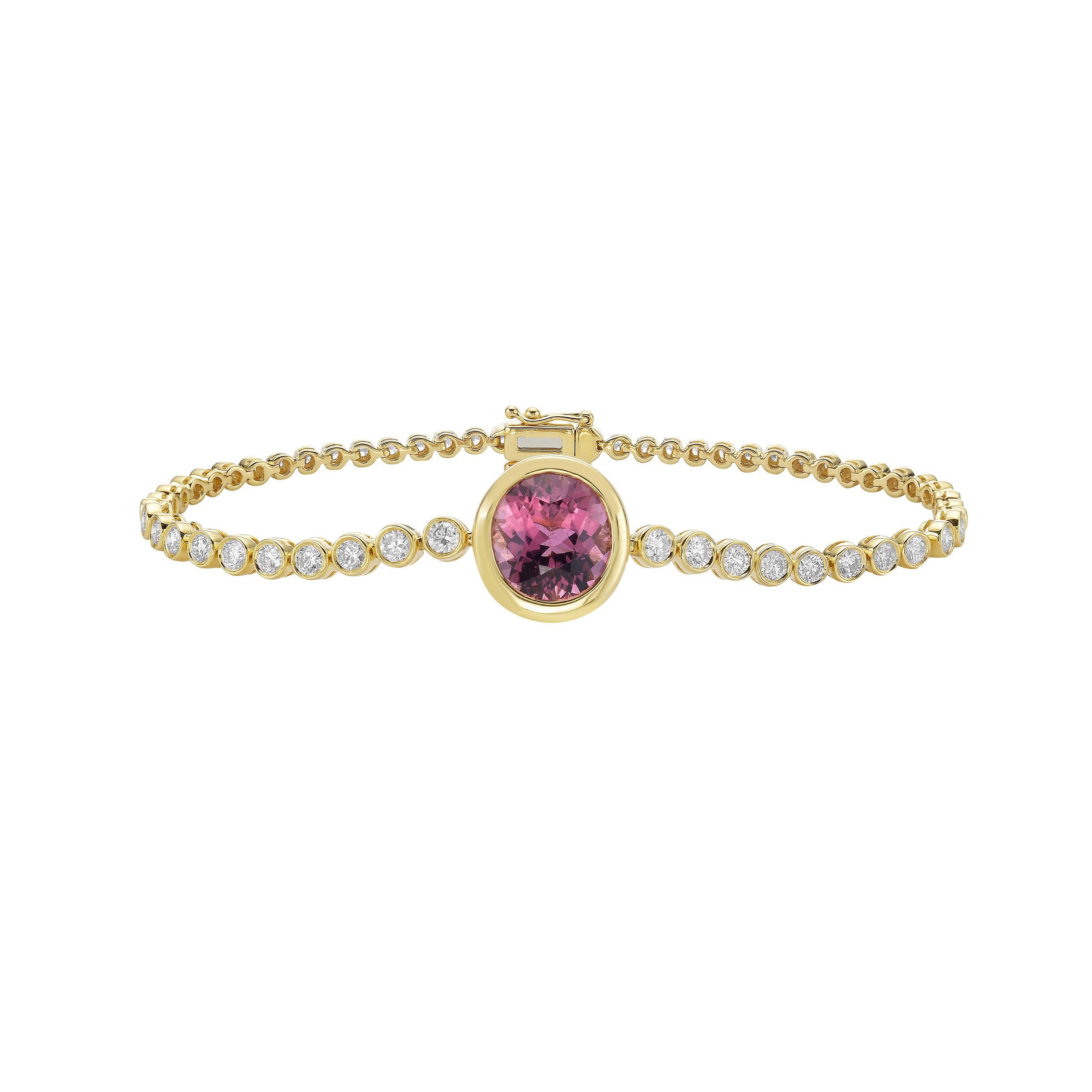 Bezel Set Pink Tourmaline and Diamond Tennis Bracelet
