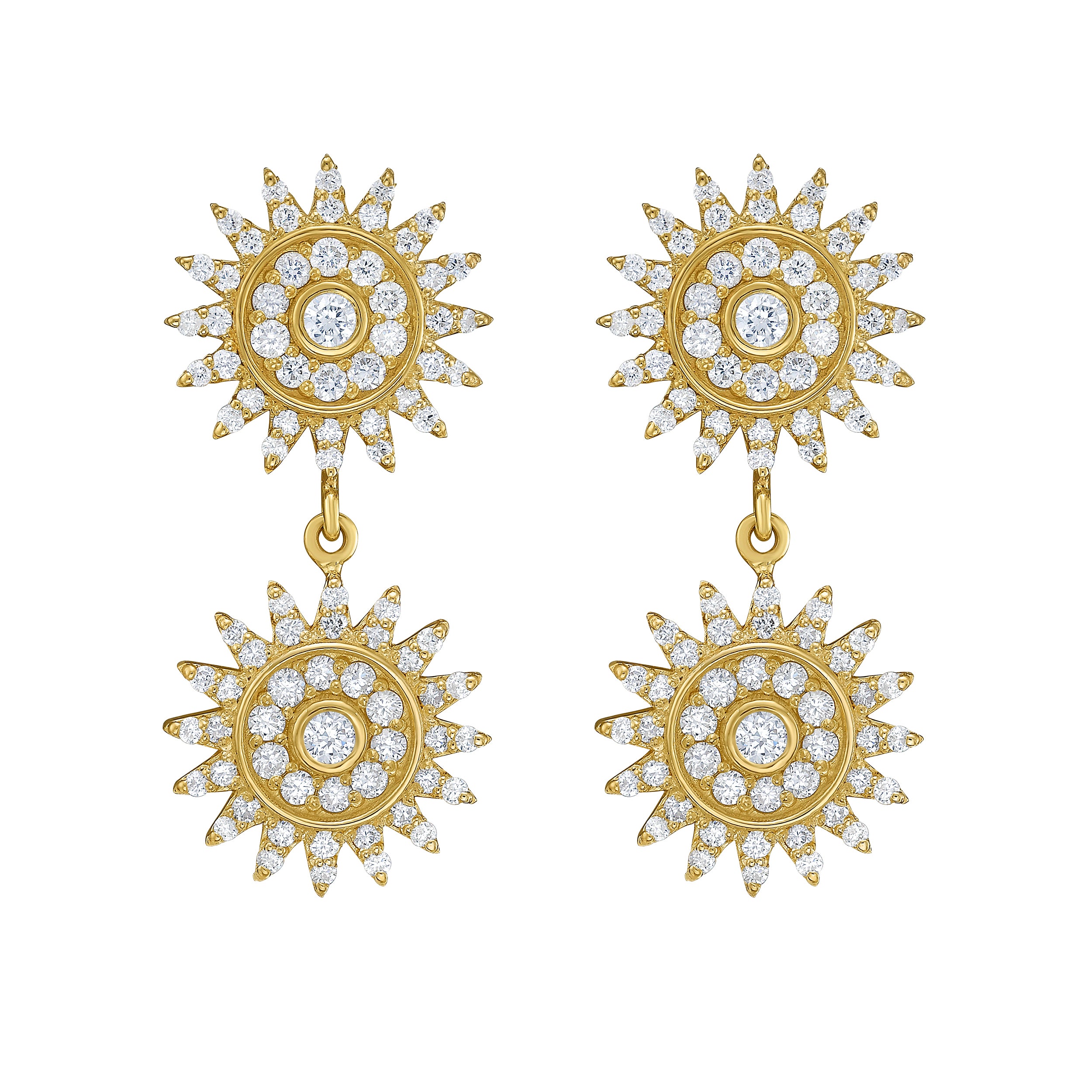 Lumière Diamond Double Sun Drop Dangle Earrings