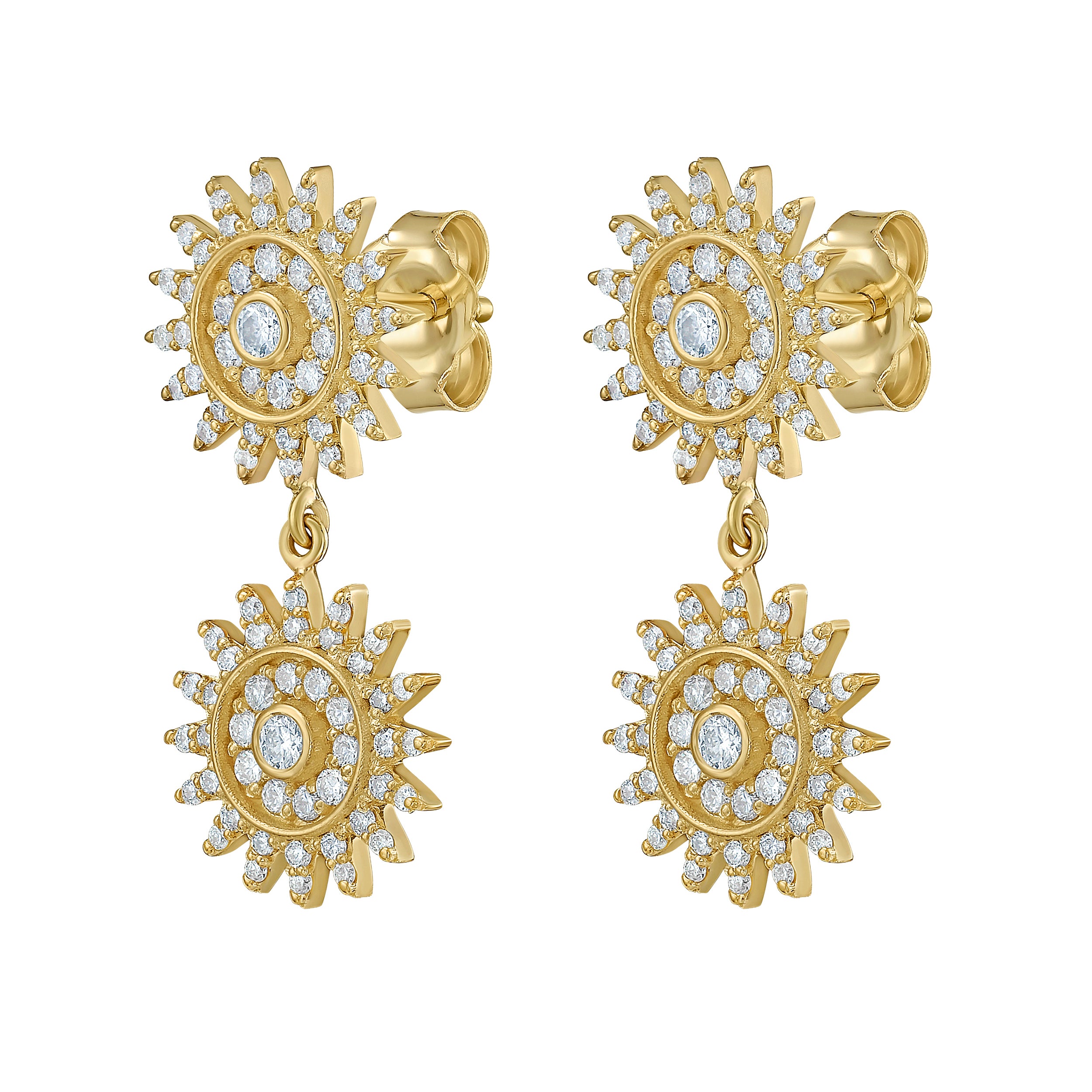 Lumière Diamond Double Sun Drop Dangle Earrings