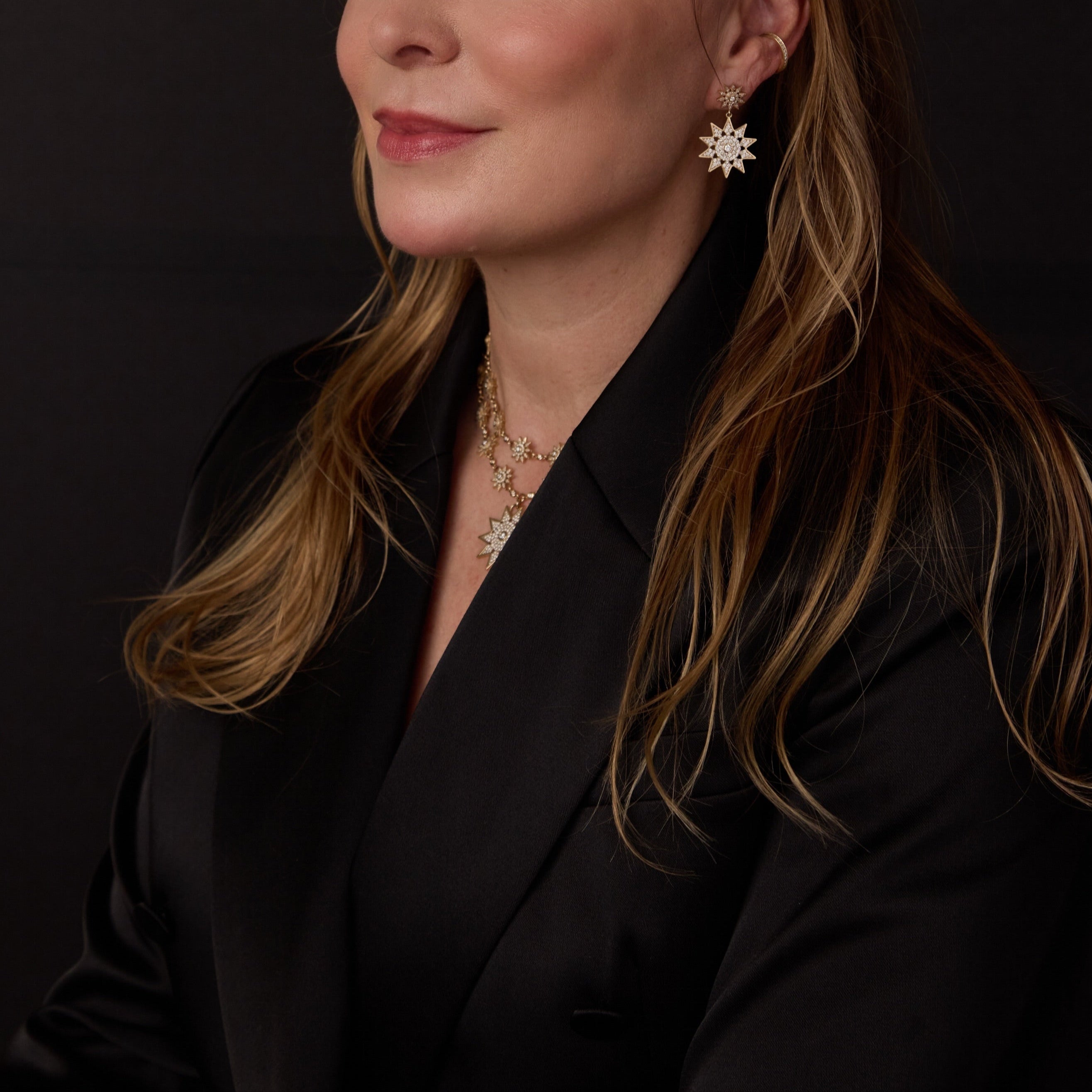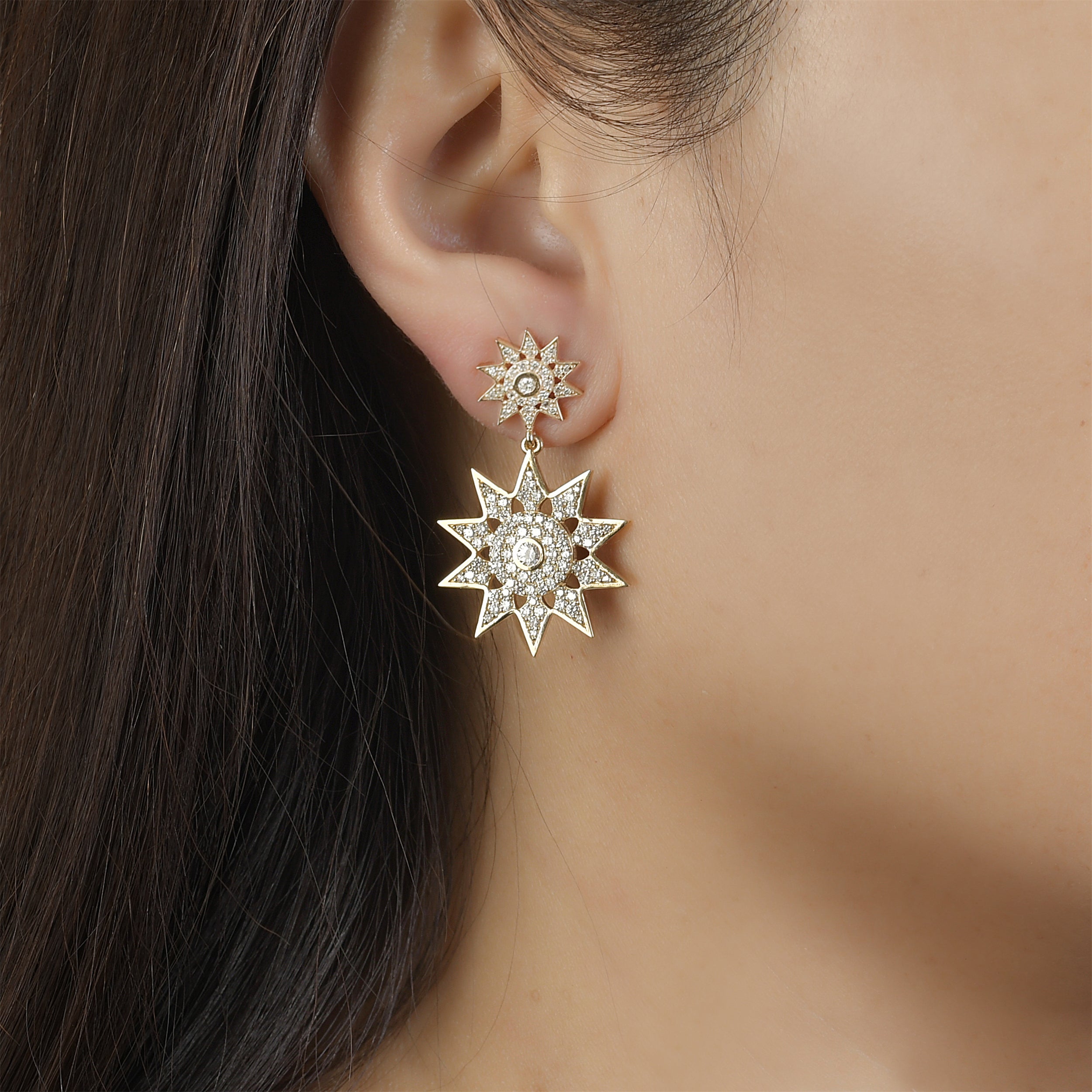 Lionheart Lumière  jumbo diamond star dangle earrings in 14K gold — luminous celestial drops inspired by Victorian star motifs
