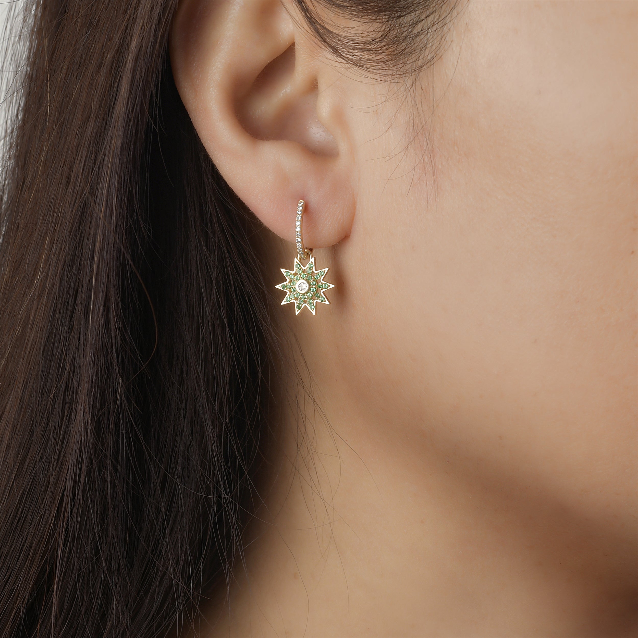 Lumière Emerald and Diamond Star Dangle Huggie Earrings