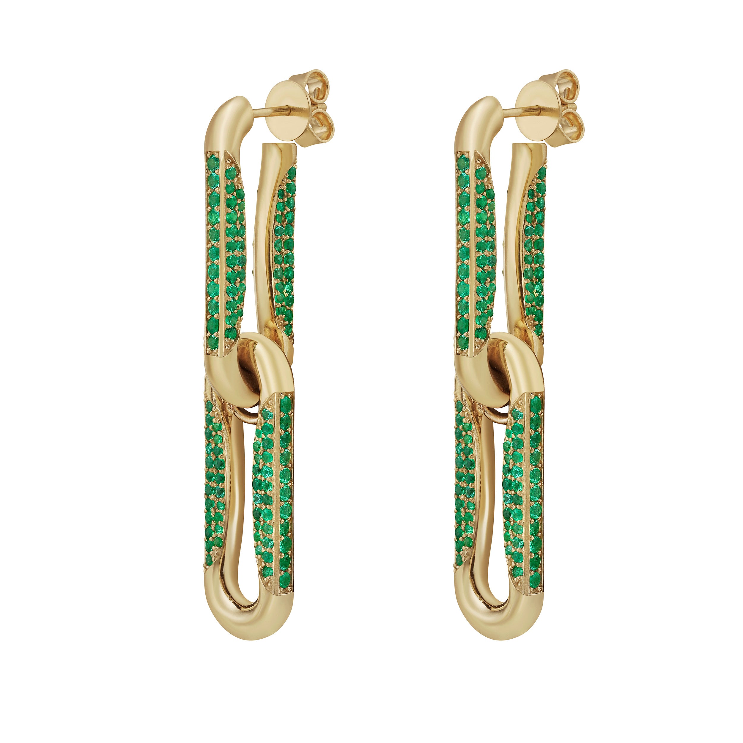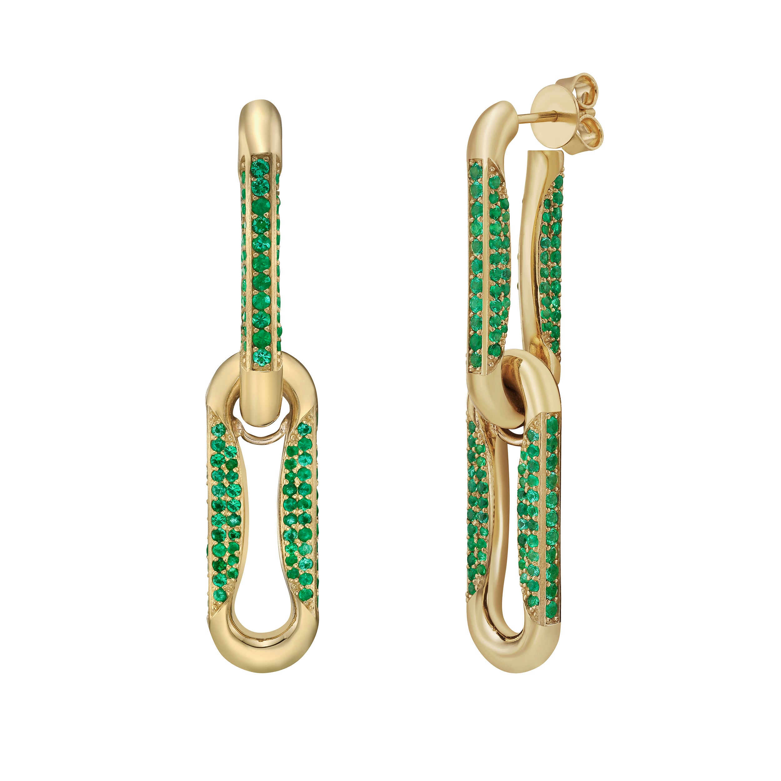 Milano Emerald Pinched Link Drop Earrings