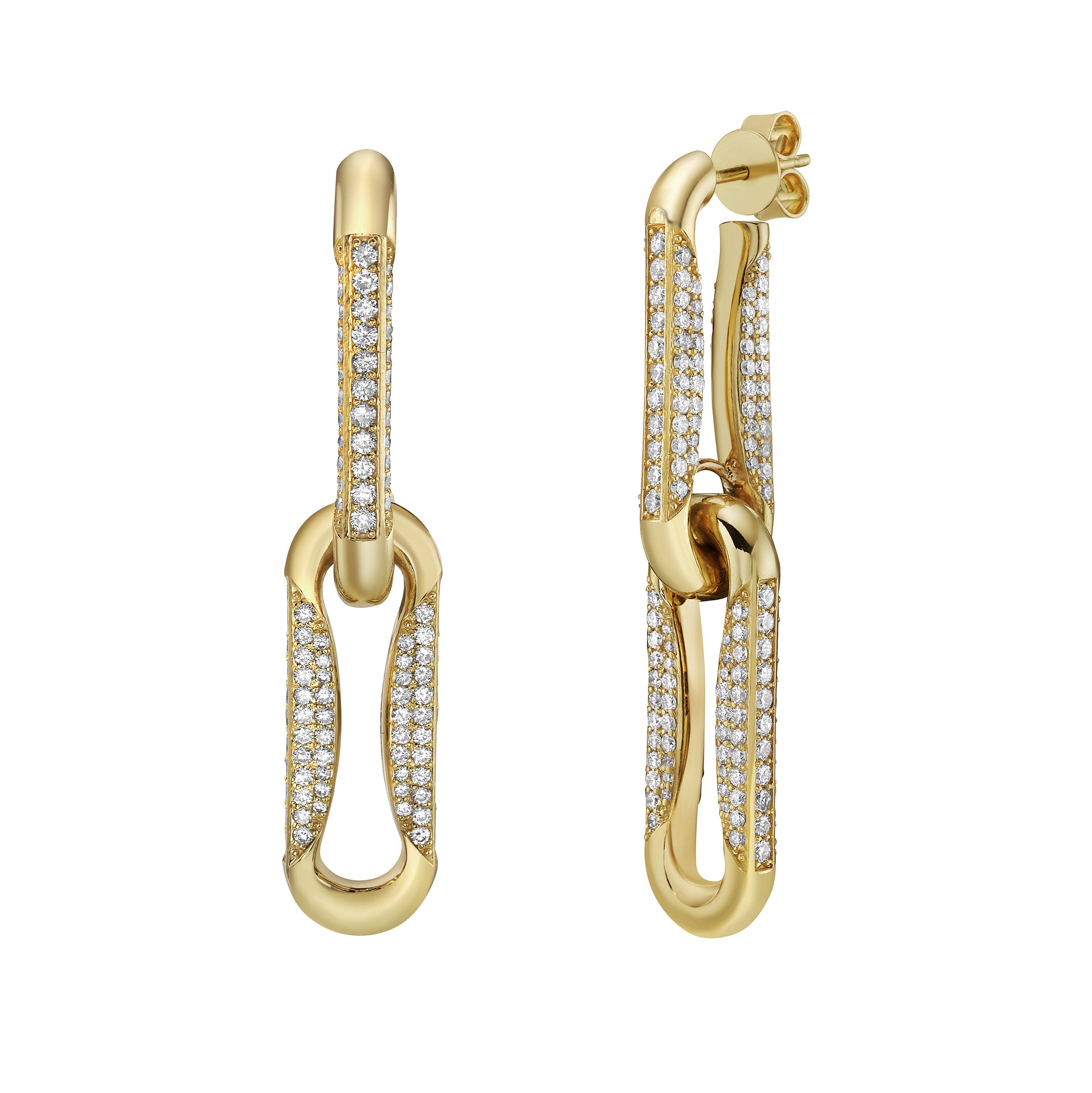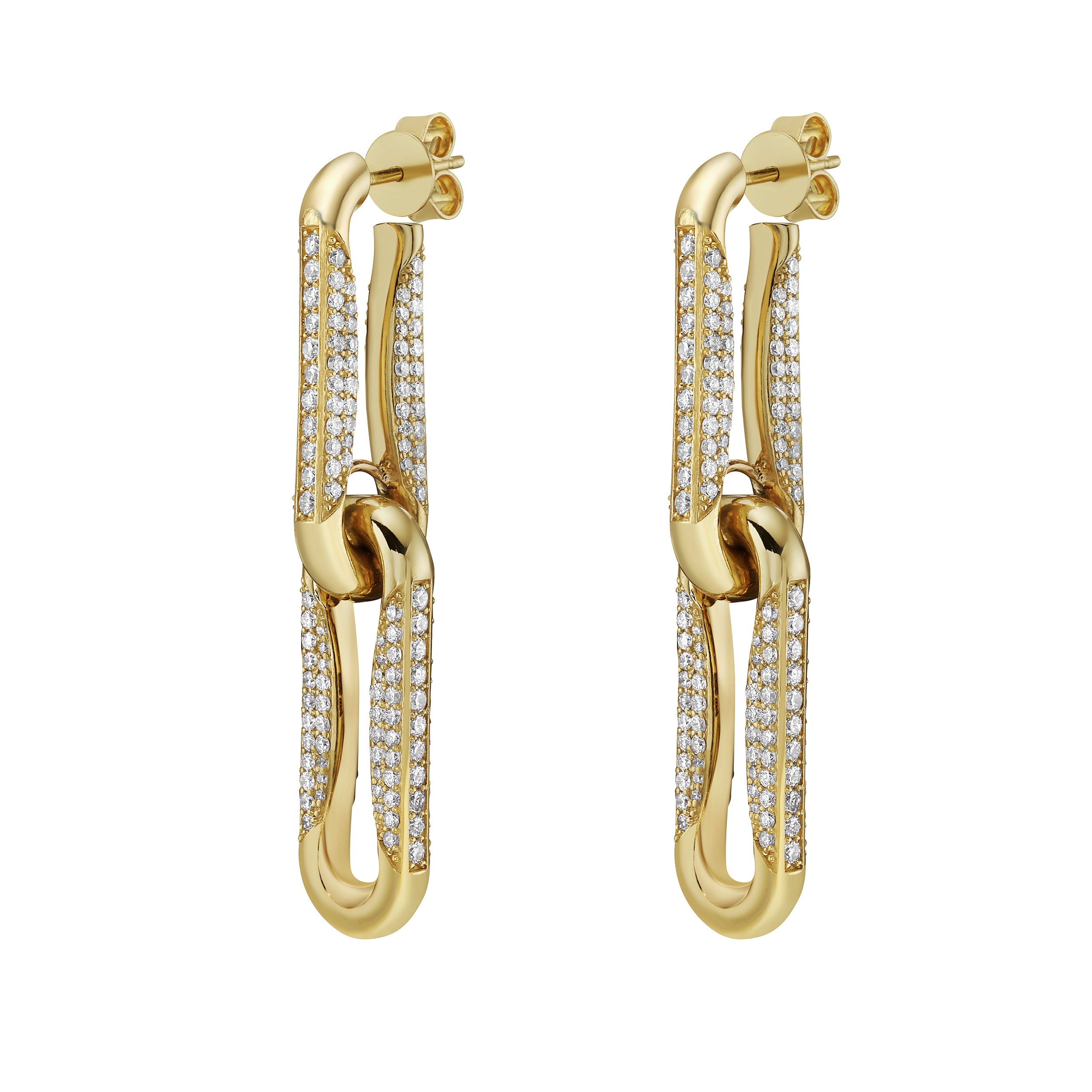 Milano Full Diamond Pinched Link Drop Earrings