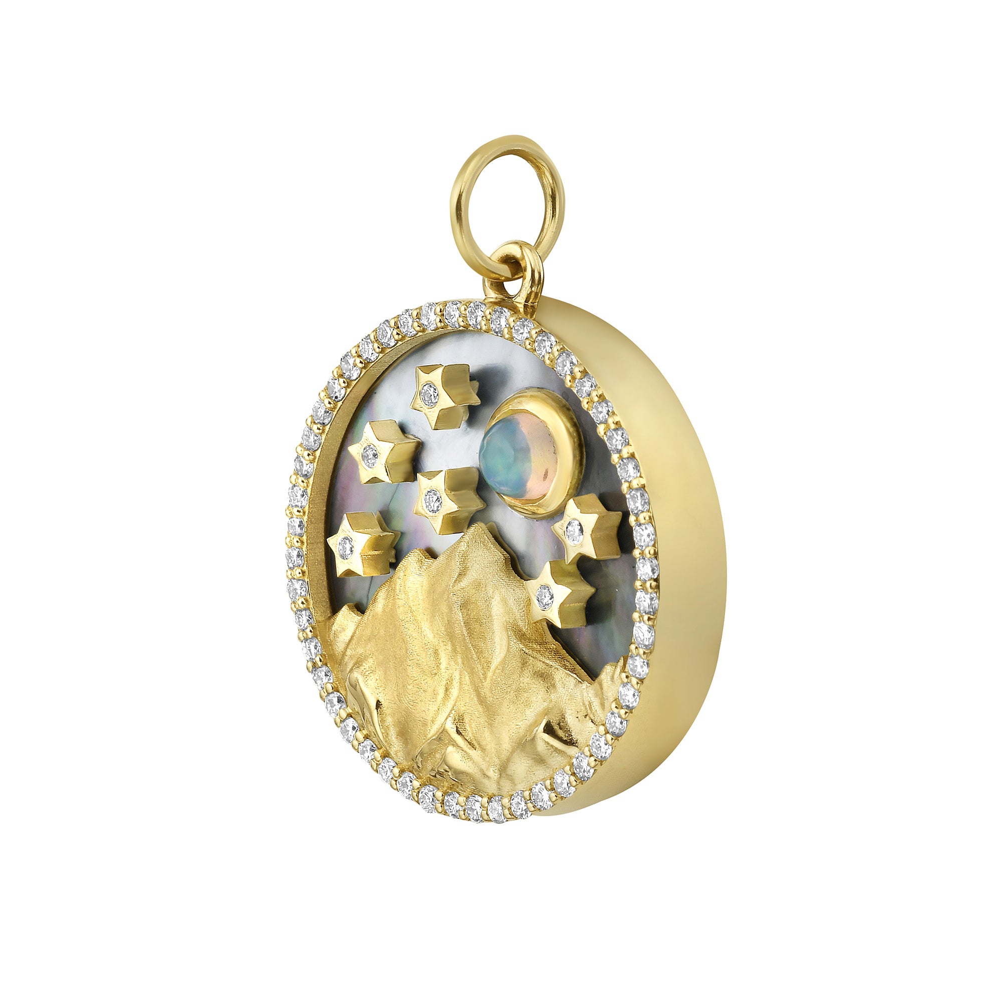 Inspired by the breathtaking mountains of Wyoming, our Zenith Medallion embodies the spirit of adventure and tranquility. The term “zenith” refers to the highest point reached in the sky or the peak of one’s achievements, reflecting both the majestic peaks and the journey of self-discovery. Wear this stunning piece as a reminder to seek balance and harmony in life, and embrace the beauty of nature as you strive to reach new heights.