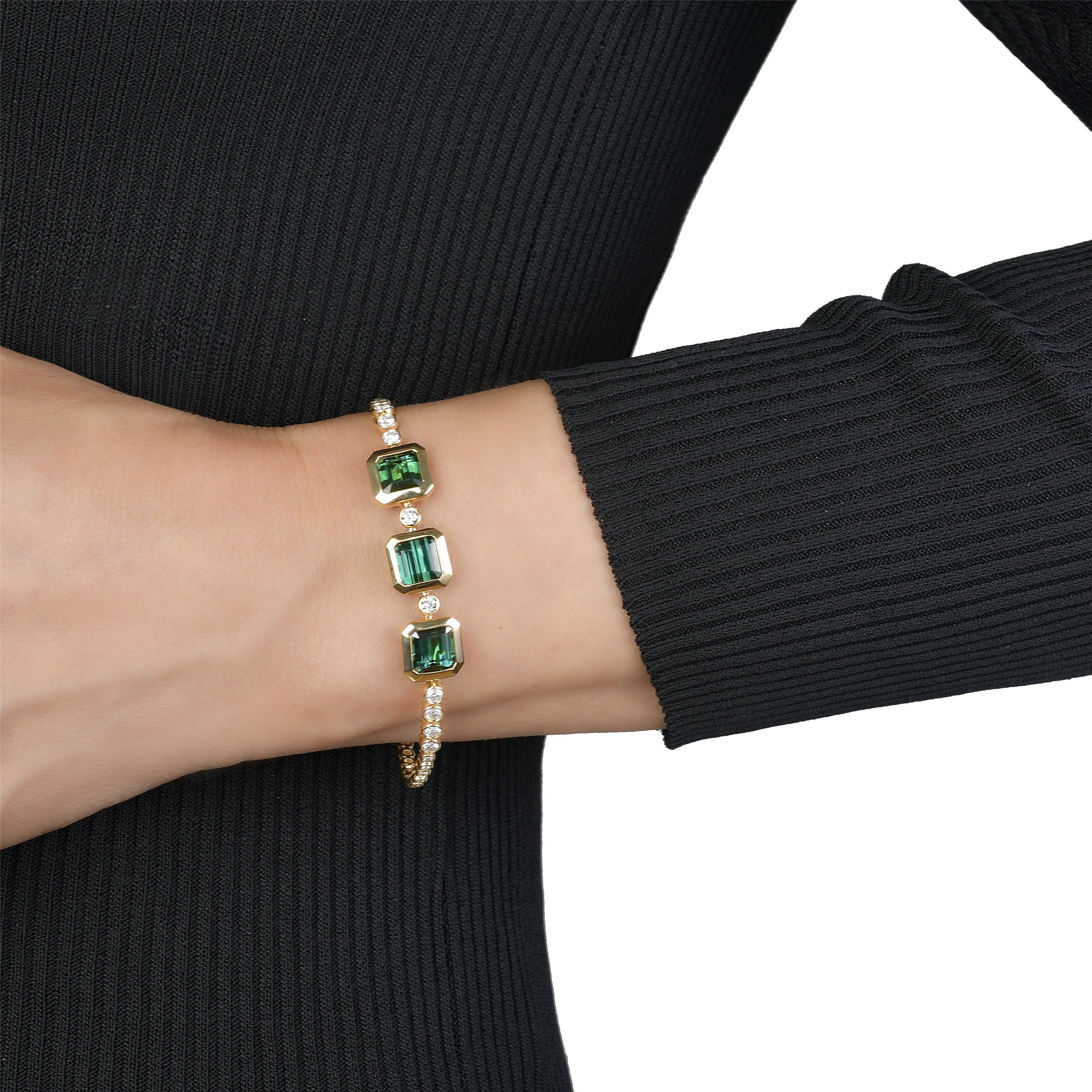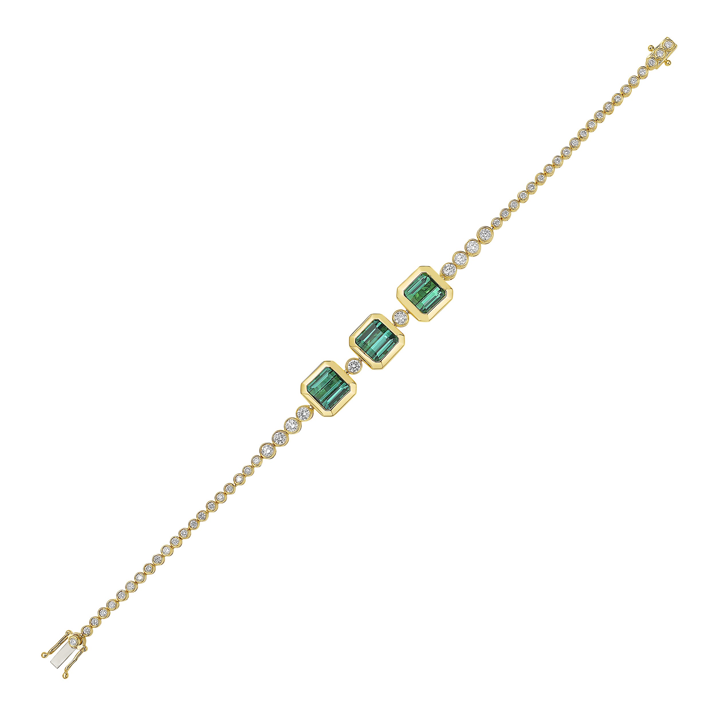 Trio Bezel Tourmaline and Diamond Tennis Bracelet