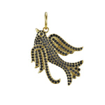 This charm is available in two distinct styles, both beautifully crafted in gold. One features a timeless high-polish gold finish, exuding classic elegance, while the other is enhanced with black rhodium, creating a striking contrast with a rich, darkened sheen for a more dramatic allure.